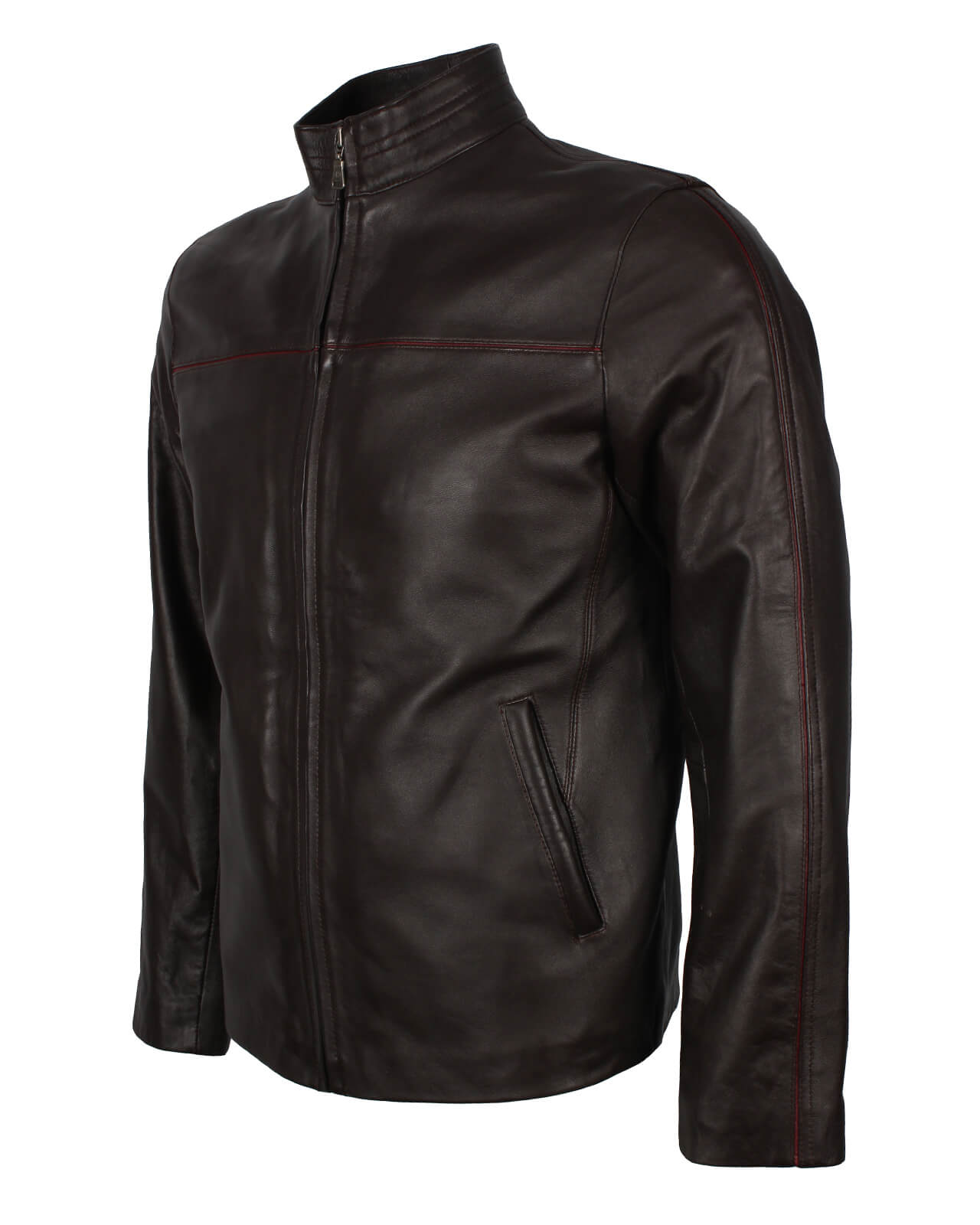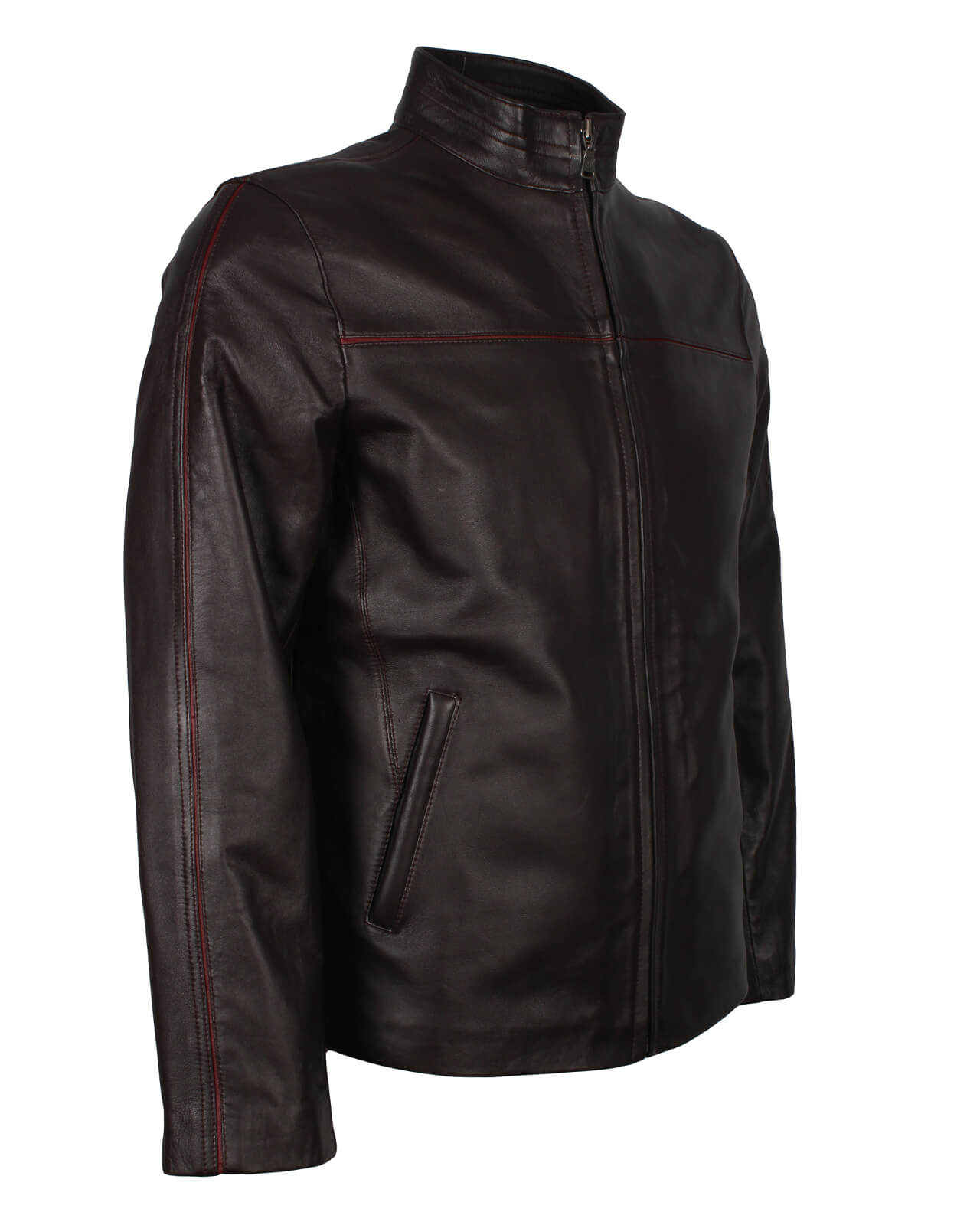 Unleash your inner rebel with this men’s red-striped brown leather jacket. Designed for all our biker enthusiasts, demonstrating a fusion of style and comfort as you embark on your journey. Offering durability, this leather jacket is manufactured using genuine leather, showcasing the top-notch work of our skilled craftsmen. The dark brown color adds timeless sophistication, while the red stripe across the chest creates striking contrast while maintaining modern elegance.
