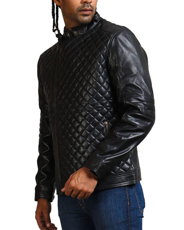 Black Diamond Quilted Motorcycle Leather Jacket