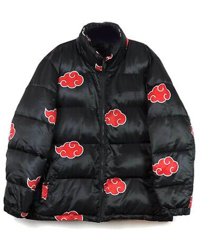 The red Akatsuki symbol creates a bold and striking design on the black exterior, enhancing the visual appearance of this puffer jacket. Perfect to be styled with casual outfits, this jacket is a statement piece instantly elevating the look of your fit and a must-have for every Naruto fan.