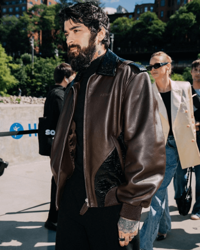 Are you seeking a jacket that looks stylish, is functional, and is a timeless addition to your wardrobe? Well, look no further, as AlexGear is introducing the Zayn Malik brown jacket. With a tough outer shell boasting durability and resilience, the exterior of this jacket is crafted with 100% genuine leather. Featuring the seamless and top-notch craftsmanship of our skilled designer, it boasts a luxurious allure. Additionally, it is equipped with a soft viscose lining offering lasting comfort and added insulation.Â